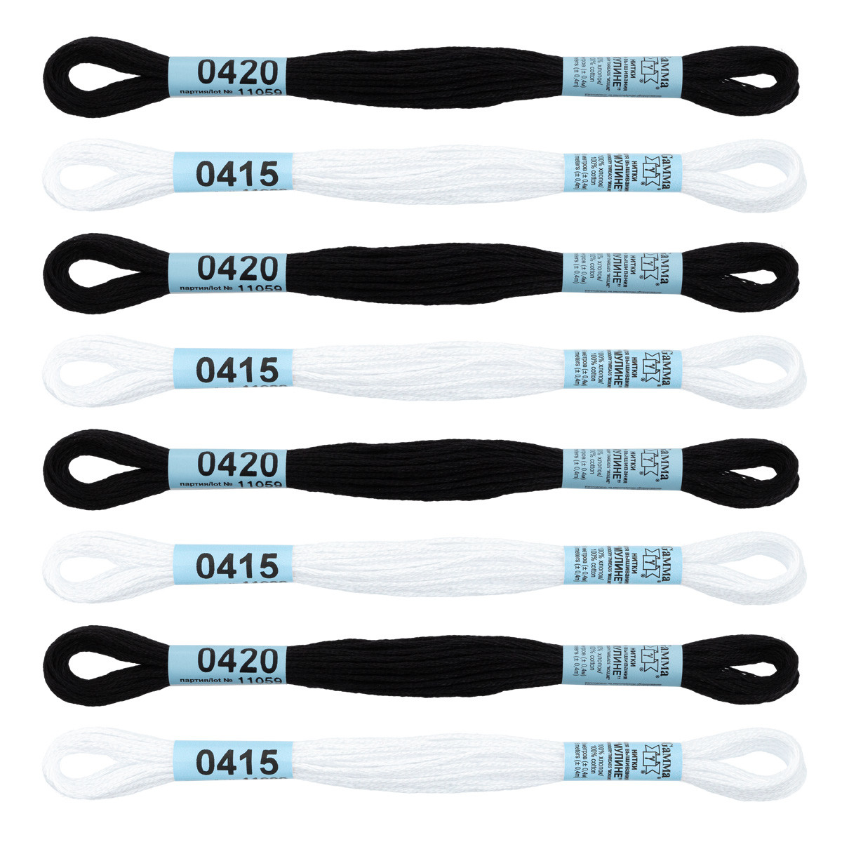Нитки для вышивания Gamma набор мулине № 10 100% хлопок 9 цв. x 8 м Серый
